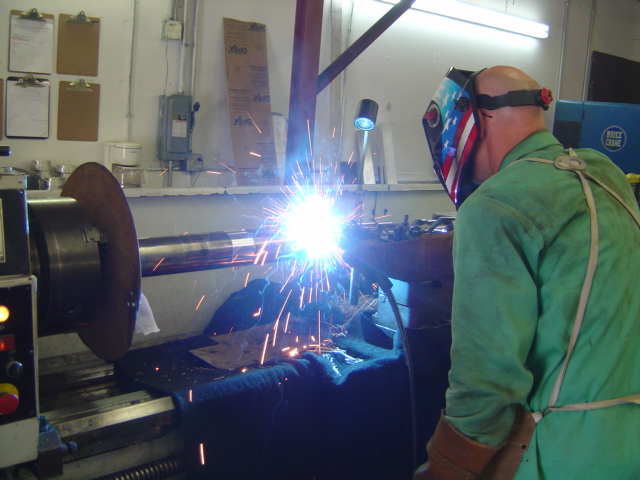 Shaft cladding repair (otherwise known as a weld-over) is a machine shop process for repairing shafts with layers of welding. The process is explained in more detail in this technical article. When a shaft is worn or pitted with crevice corrosion the surface becomes hostile to shaft lip seals or cutlass bearings. The lip seal will leak continuously while a cutlass bearing will wear out prematurely.