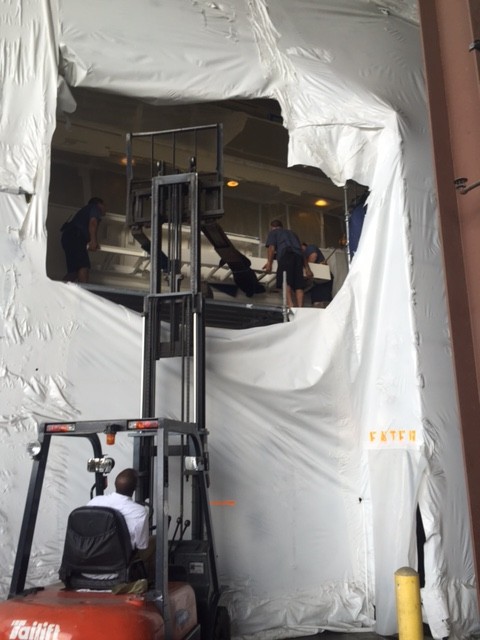 The tricky part of the job was getting the ladder on and off of a boat of this size with the vessel blocked in the yard and surrounded by scaffolding. Careful use of a forklift and skilled technicians from both our hydraulics but also from our running gear teams made the job a success.